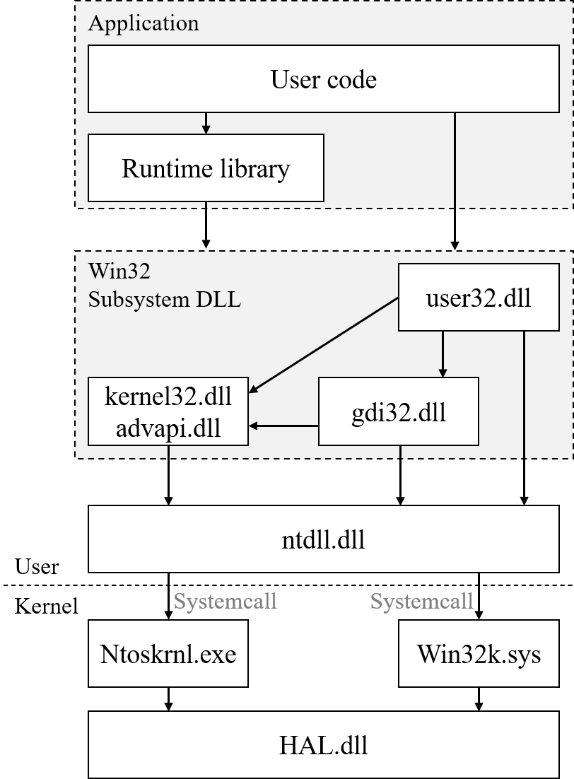 백그라운드에서 키보드 입력감지를 위해서는 몇가지 방법이 있고, event-driven 구조의 windows를 이용하여 아래 그림의 구조로 Windows API에 접근해 키보드 디바이스로부터 키입력에 대한 메시지를 전달받을 수 있다.